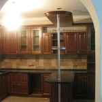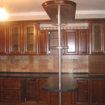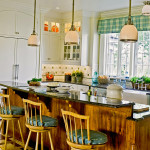 Ну а если квадратные метры на Вашей кухне достаточно велики, где можно «разгуляться» и провести эксперименты, тогда можно воплотить в реальность данную идею. В самом центре кухни установите барную стойку. Она будет напоминать отдельно стоящий островок и тем самым являться изюминкой в общем дизайне кухни. Кроме того, такой способ размещения мебели очень удобен, поскольку подойти к нему можно будет совершенно с любой стороны, что не может быть неудобно в процессе приготовления еды, или застолья.