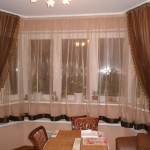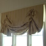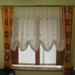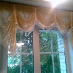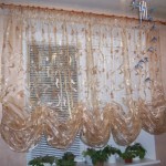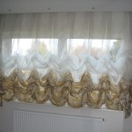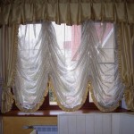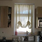 Для создания этих модных штор на кухню, нужно использовать обычную стандартную штору. В нескольких местах собираем в замысловатый пучок и готово. Замечательно и гармонично смотрятся в сочетании с ламбрекенами.