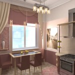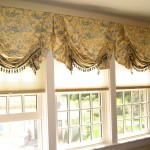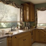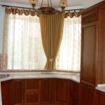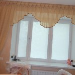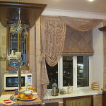 В данном случае фестоны собираются по длине штор. Поднимаются с помощью простого механизма. Замечательно выглядят в сочетании с классическим стилем кухни. Можно попробовать добавить ламбрекены для изящности.