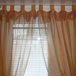 На данном фото штор на кухню 2016 года Вы сейчас видите шторы-маечки. В данном случае петли делаются за счет кроя самого полотна.