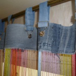 Довольно простой, но интересный подход. Штора закрепляется сверху, а снизу скручивается на необходимом Вам уровне. После подвязывается лентой, а снизу приспосабливается бамбуковая вставка для веса. Штора готова.