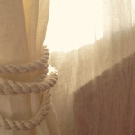 Используя эти необычные занавески, Вы навсегда позабудете, что такое ветер, который терзает Ваши шторы. Согласитесь, часто приходится сталкиваться с данной проблемой особенно в теплые летние дни, когда ветер так и норовит что-то сбросить с вашего подоконника. Для решения этой проблемы стоит просто натянуть на несколько карнизов штору, а посредине затянуть симпатичной ленточкой.