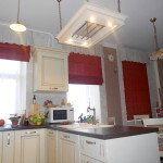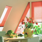 Это современный стиль штор на кухню в 2016 году, и они выглядят, как в американском стиле ретро. Ничего лишнего и все довольно изыскано! Для кухонь, размещенных на мансарде специфика мансардных окон в их уклоне. Для этого следует рассмотреть вариант натягивания на несколько карнизов либо крепление на зазоры по бокам.