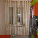 Если у Вас кухня в стиле минимализма либо восточном стиле, то эти шторы именно то, что нужно для полного дополнения. Останется только подобрать ткань нужной Вам плотности. Также можно заметить удобство для балконной двери – проблем с зажиманием этих штор точно не будет.