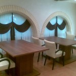 Достаточно только присборить в вертикальные складки сверху австрийскую, как выходит уже совсем другой вариант. Хорошо смотрится с классическим интерьером кухни.