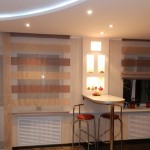 Люверсы располагается непосредственно в самой шторе. Как видно на фото шторы на кухню 2016, при складывании смотрятся довольно мило и самодостаточно. Замечательно вписываются как в стиль модерн, так и в стиль авангард.