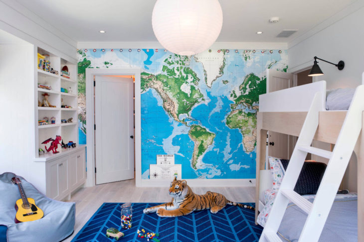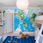 - Фотообои. Тенденции этого года направлены на минимализм, многие родители оставляют однотонные стены различных кремовых цветов. Но для ребенка это скучно, не так ли? Фотообои с видами Нью-Йорка или Парижа создадут ощущение путешествия, а обои с природными пейзажами пробудят у детей интерес к окружающему миру. Интерьер детской должен быть, в первую очередь, интересен ребенку. Изображения на обоях не оставят его равнодушным.