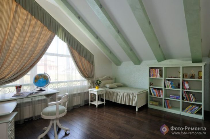 - Объемные занавески. Свет для ребенка очень полезен, но иногда он только мешает уложить его спать. Занавески из плотной ткани помогут приглушить свет, создав при этом ощущение ночного спокойствия. Кроме удобства, пышные шторы обеспечивают эффект некой загадочности, как в сказке. Шторы можно использовать не только для окон, но и вешать их около кроватей. Тогда спальное место будет выглядеть намного уютнее и привлекательнее.