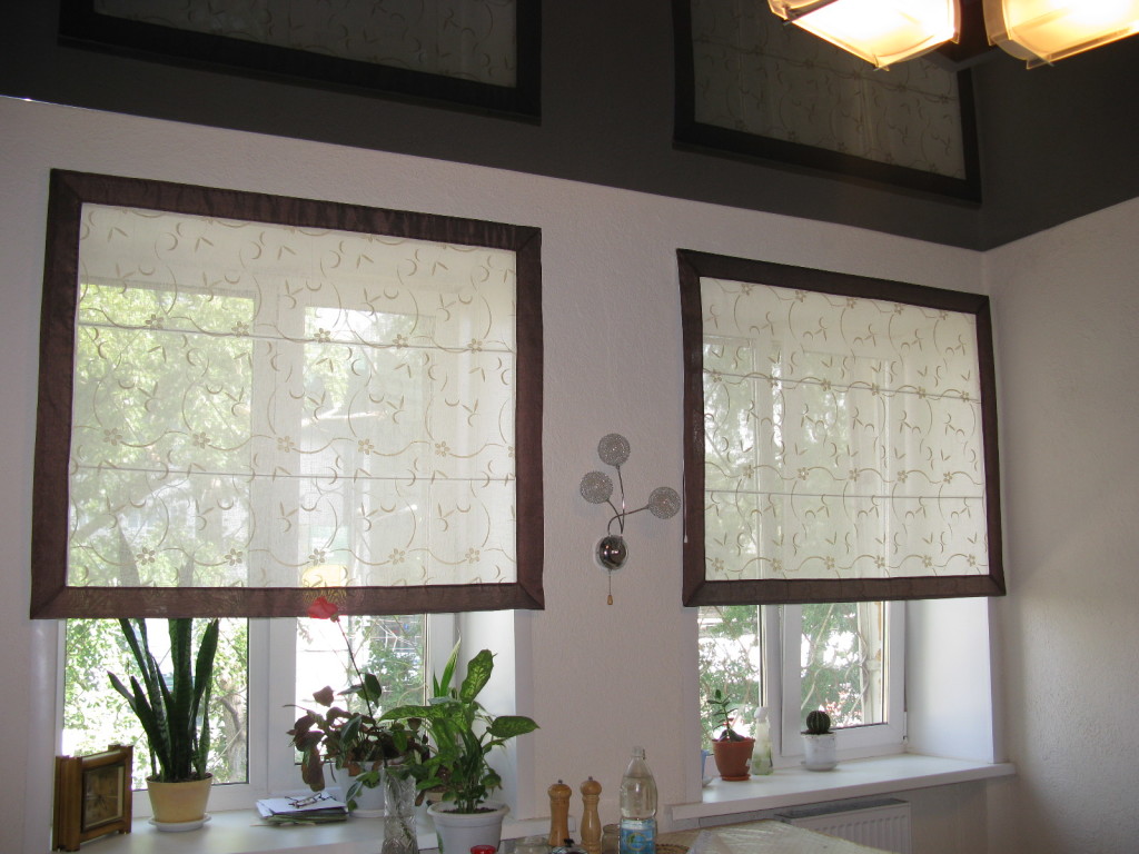Наиболее подходящие варианты штор на такой тип кухни, это: