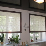 - Замечательно будут смотреться римские или рулонные шторы, а также австрийские или французские и, конечно же, жалюзи.