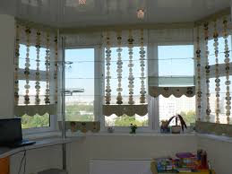 Можно обустроить их при помощи римских штор, ведь их легко убрать для прекрасного освещения комнаты. В случае, если помещение достаточно большое и просторное, можно смело вешать большие варианты декоративных штор.