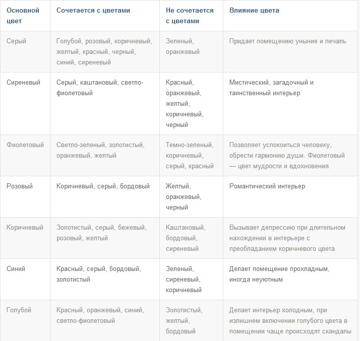 Чтобы правильно сочетать цвет штор на кухне, предлагаем вам воспользоватся нашей таблицей правильного сочетания цветов: