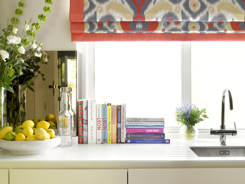 Современные дизайнеры утверждают, что шторы на кухню лучше подбирать в тон мебели. При написании картины общего дизайна кухни тон штор лучше выбирать в соответствии с цветом мебели или самым большим предметом интерьера в кухне. Такой вариант дизайна позволяет слить стены и окна кухни в одну композицию.