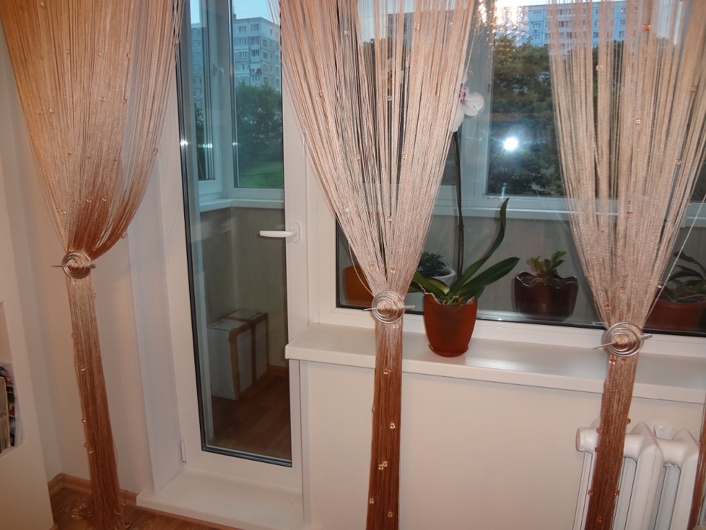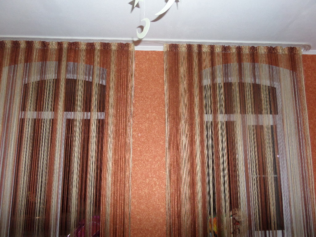 Они состоят из нитей и обычно украшены бусинками или стеклянными шариками. Под воздействием солнечного света они начинают переливаться и давать блики на поверхностях стен и мебели. Очень светлый и яркий вариант, который сочетается практически со всеми стилями интерьера.