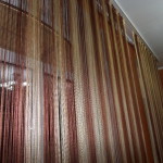 В отличии от прошлого варианта, ленты из которых состоят шторы, прилегают плотного друг к другу, практически не оставляя просвета. С расстояния эти шторы воспринимаются как мозаичный рисунок и удачно укладываются в любом интерьере.