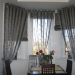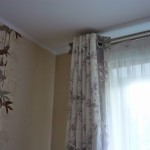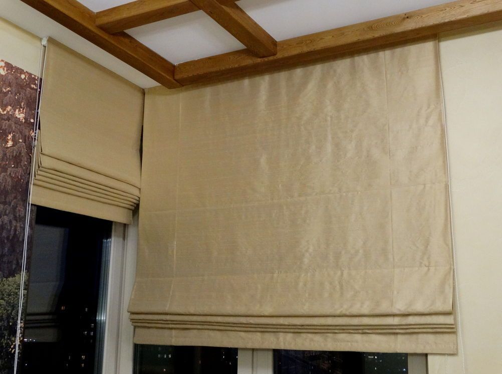К примеру, можете подобрать в зал шторы на люверсах в классическом стиле. А в кухонную зону выбирайте римские шторы.