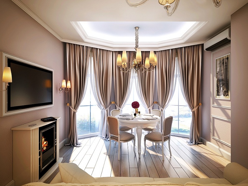 На сегодняшний день все чаще нам встречаются квартиры, в которых кухня объединена воедино с гостиной комнатой. Какие же шторы подойдут в подобную планировку жилья?