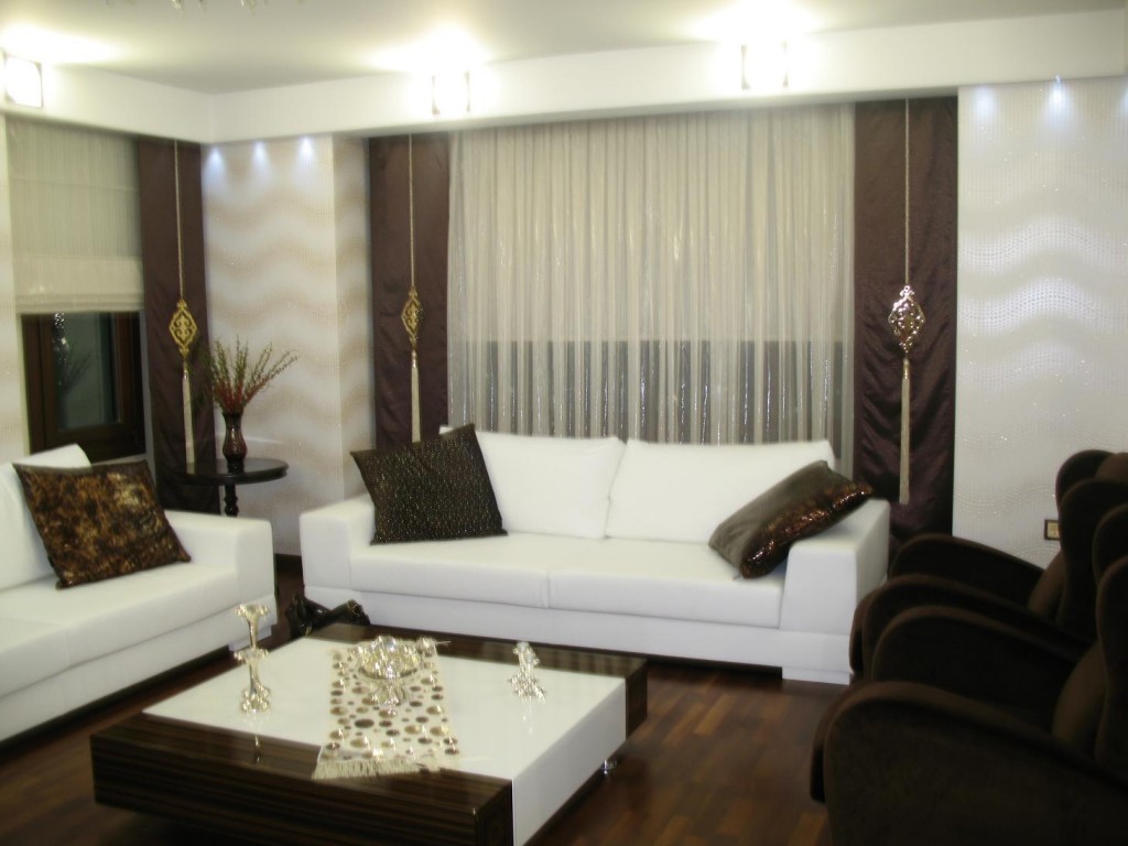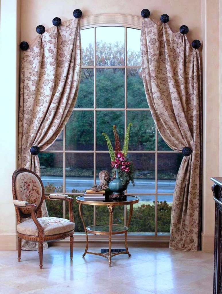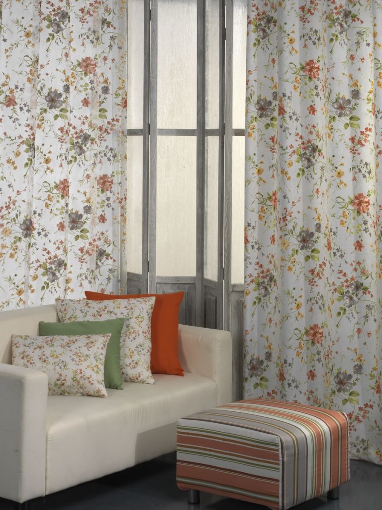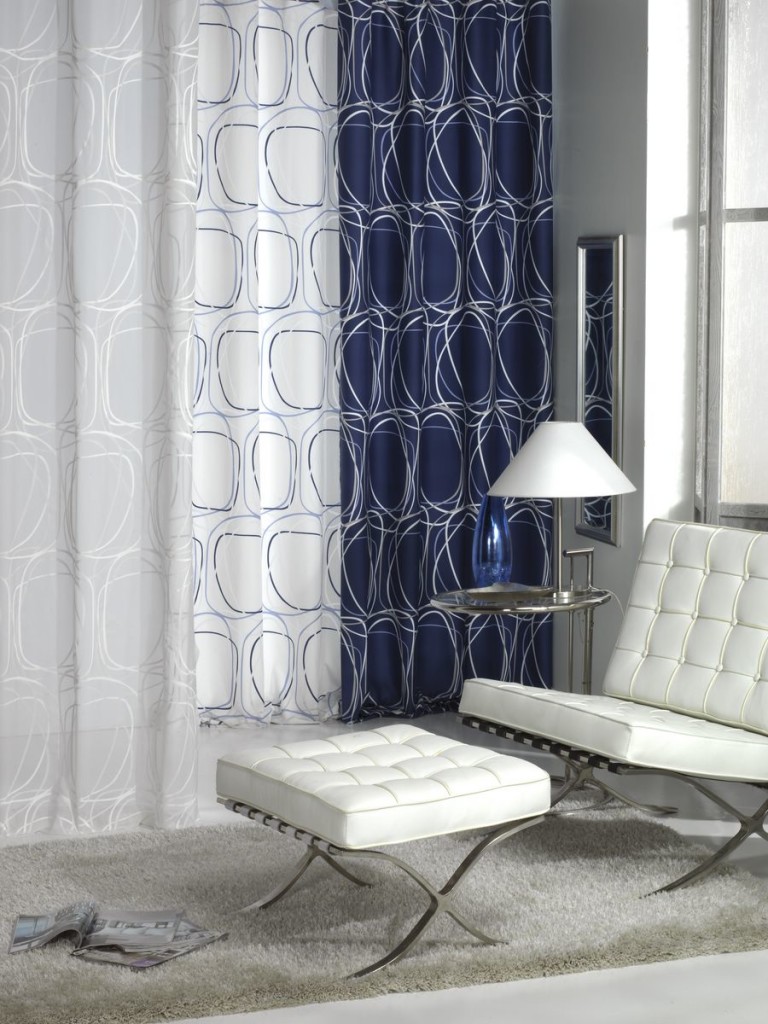 Если Вы сделали отделку комнаты светлой, выбирайте мебель, обитую темными цветами и такие же и шторы! Причем, они могут быть не обязательно однотонными. Оригинально выбирать узоры!