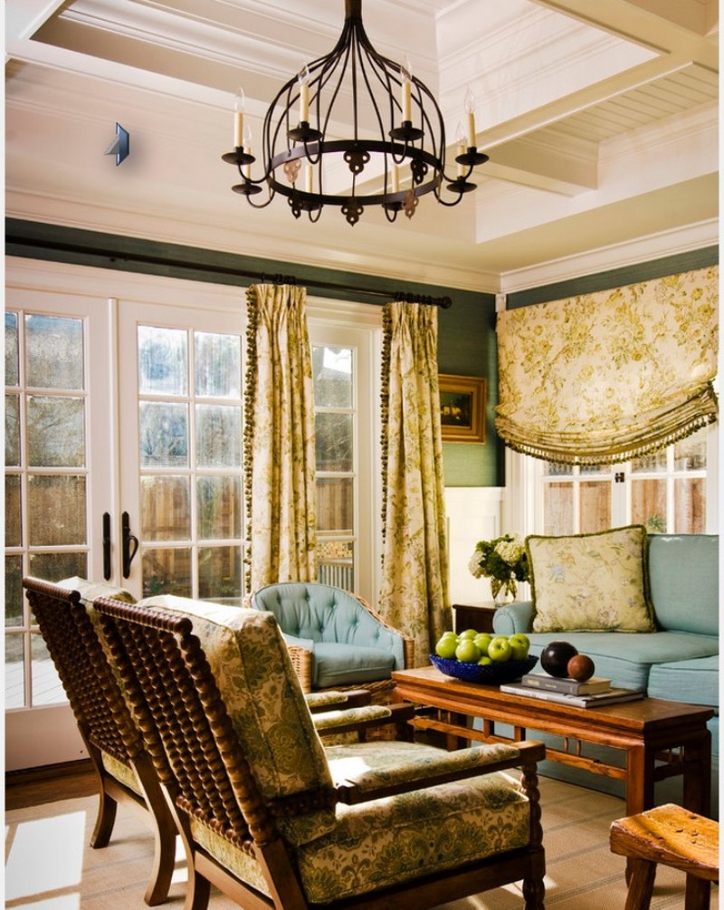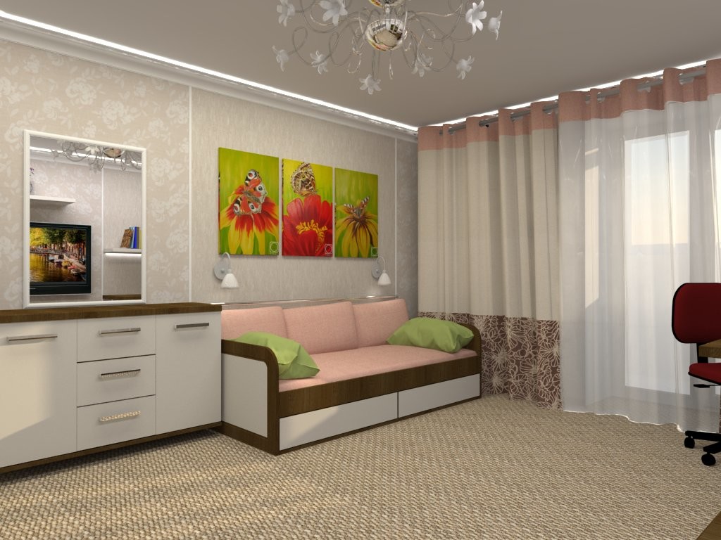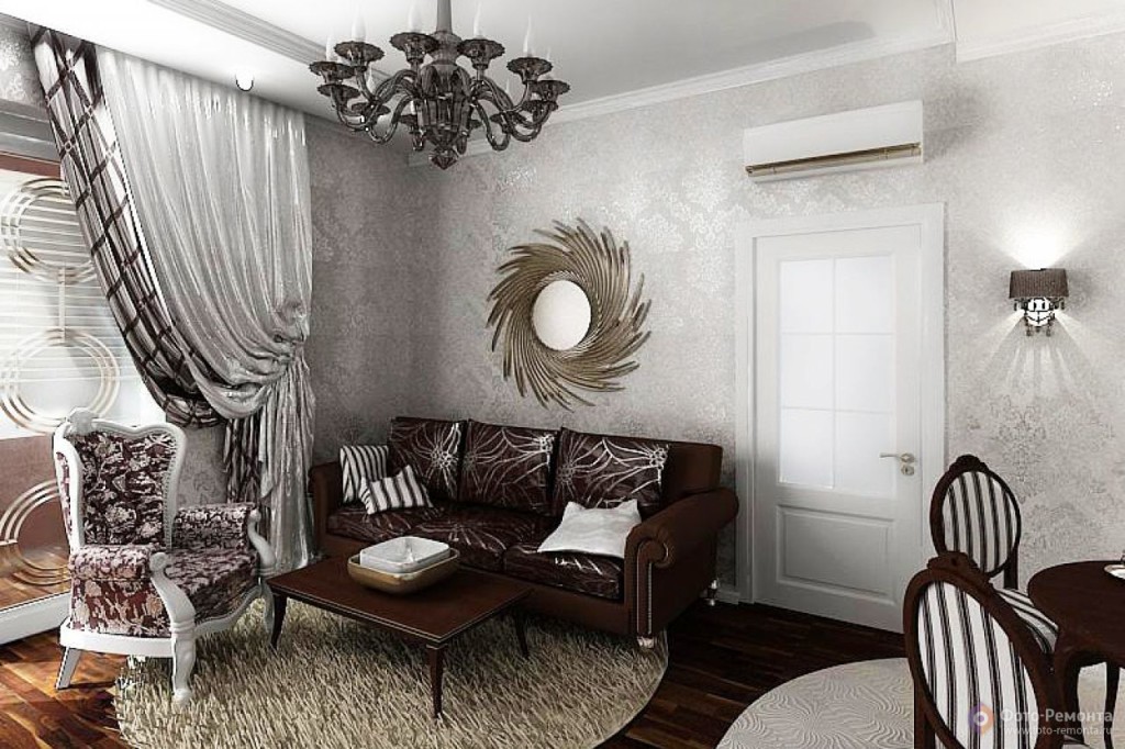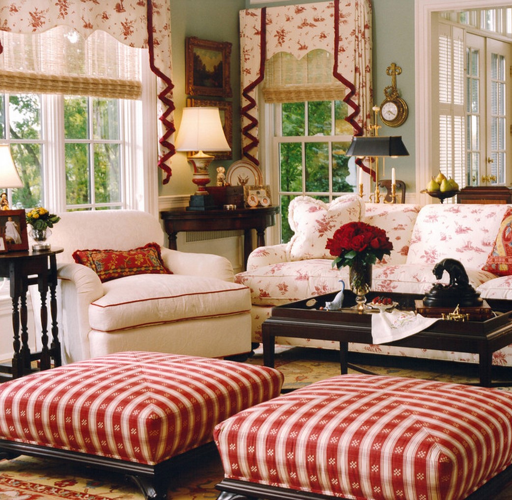 Если Вы сделали отделку комнаты светлой, выбирайте мебель, обитую темными цветами и такие же и шторы! Причем, они могут быть не обязательно однотонными. Оригинально выбирать узоры!