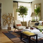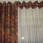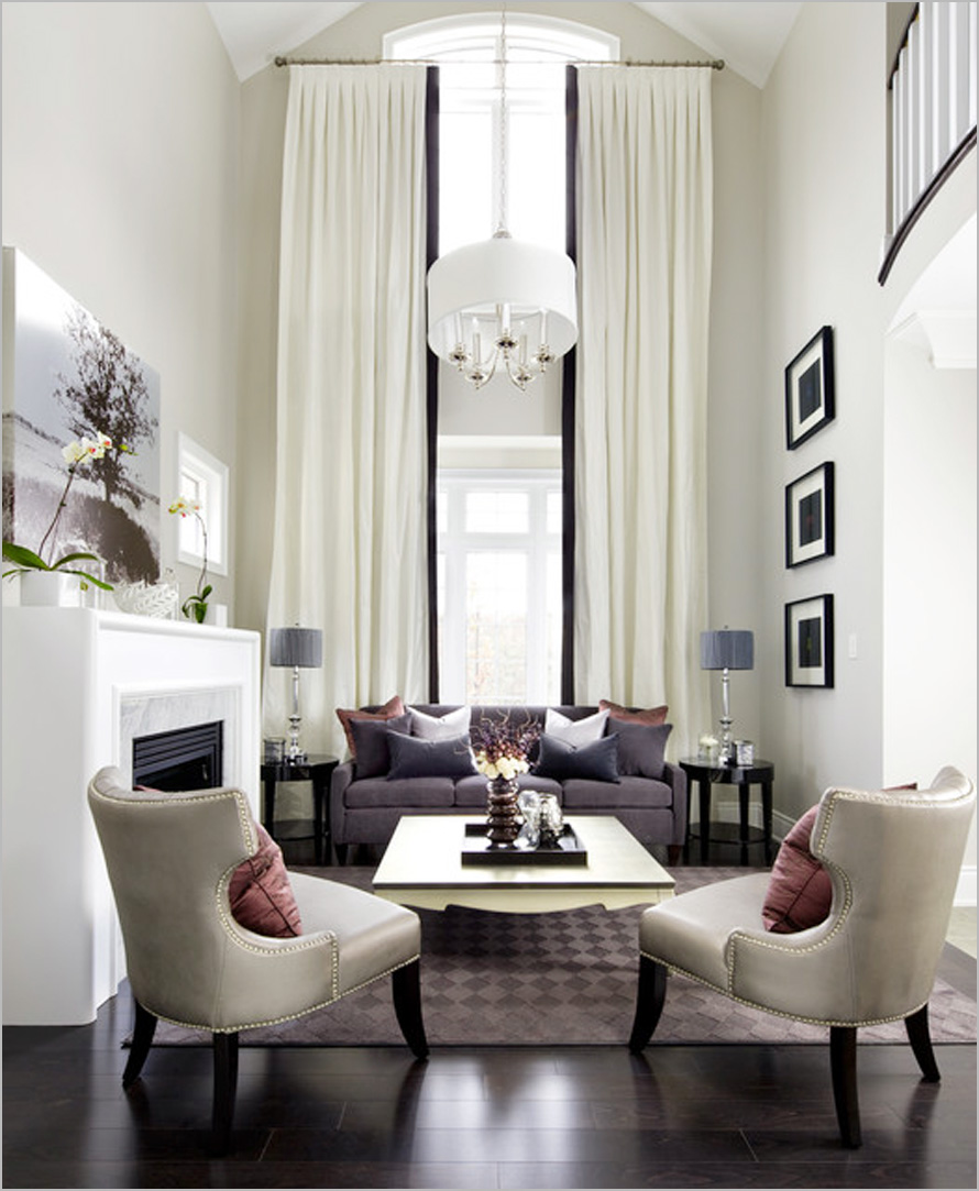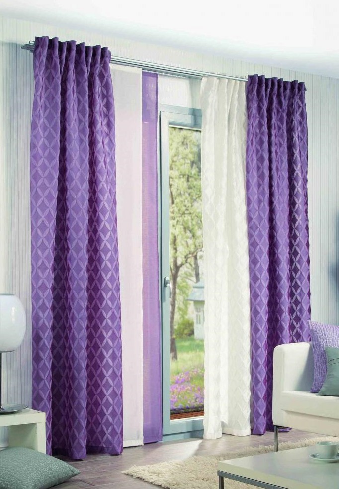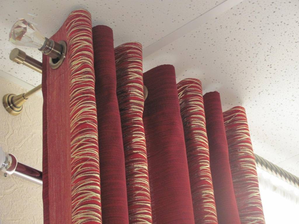 Если кто не имеет понятия этого обозначения, то люверсами называют пластиковые или металлические кольца, при помощи которых шторы одеваются на карниз. Шторы, оформленные при помощи таких колец, очень оригинально выглядят. К тому же это – очень интересное декорирование, даже если гостиная комната будет оформлена в одной цветовой гамме, без каких-либо принтов.