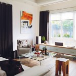 Если у Вас гостиная комната, в которой большие и достаточно широкие окна, шторы в японском стиле – будут очень даже уместны! А вот если окна небольших размеров, то такие шторы могут лишь утяжелять и скрадывать пространство!