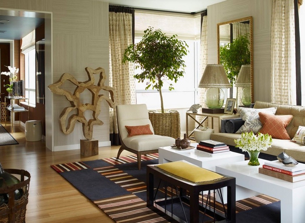 Благодаря шторам в натуральных тонах, можно очень хорошо оживить интерьер. Такое помещение подарит помимо отдыха еще и дополнительную энергию!