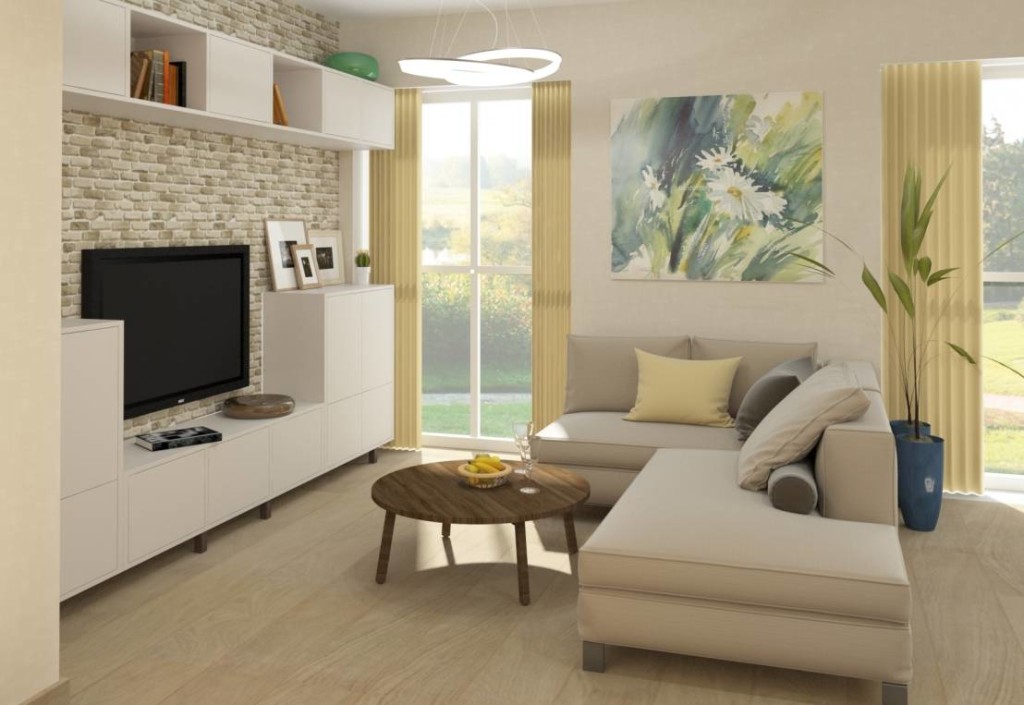 Основа белого цвета – это решение даже самой сложной задачи относительно визуального облегчения интерьеров любого помещения, а уж тем более – гостиной комнаты! Он привносит залу свежесть, преображая небольшую, по площади, гостиную комнату. Такой вариант идеально подойдет в том случае, когда Вы хотите акцентировать особое внимание на яркой и выразительной мебели, светильных устройствах и других элементах интерьера, за исключением текстиля.