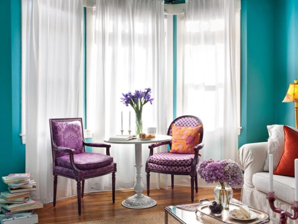 Если использовать цветные варианты штор, они помогут создать достаточно интересный образ помещению. Именно поэтому, Вы можете не бояться проводить эксперименты в плане сочетания! Ведь правило, которое нам казалось «вечным» — шторы должны быть такого же тона, как и текстиль, уже совсем не является основным! Здесь важно учитывать лишь то, что Вам необходимо подбирать шторы, сочетающиеся со всевозможными элементами декора или отделки комнаты, в том случае, если оформление не однотонное.