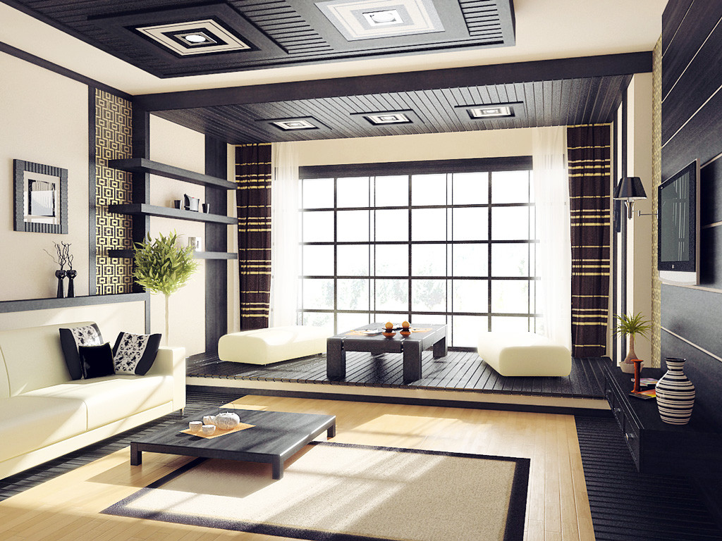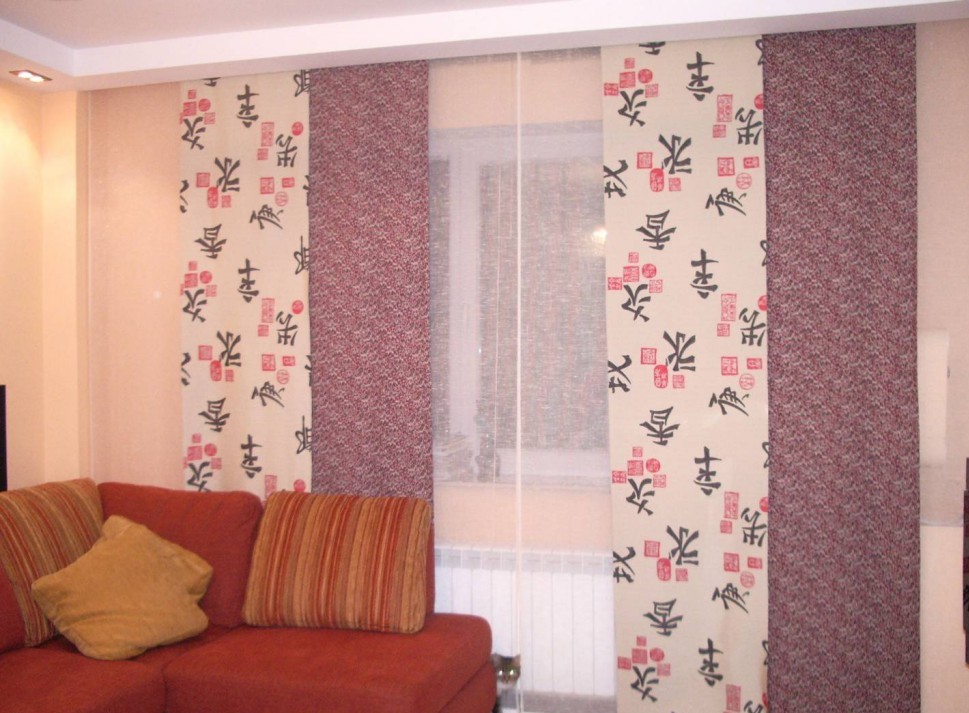 - шторы являются дополнительным декорированием. А выбирая «японские» шторы, можно очень оригинально и интересно оформить гостиную комнату.