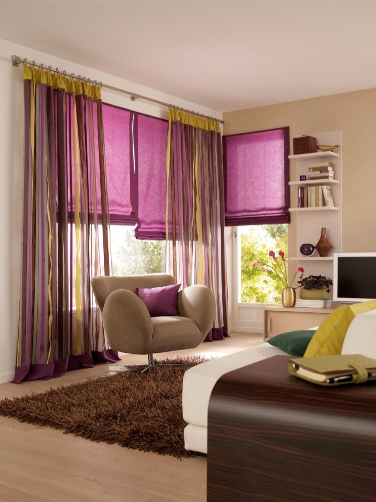Римские шторы – это замечательное сочетание с самыми обычными, классическими занавесками (из любых материалов!).