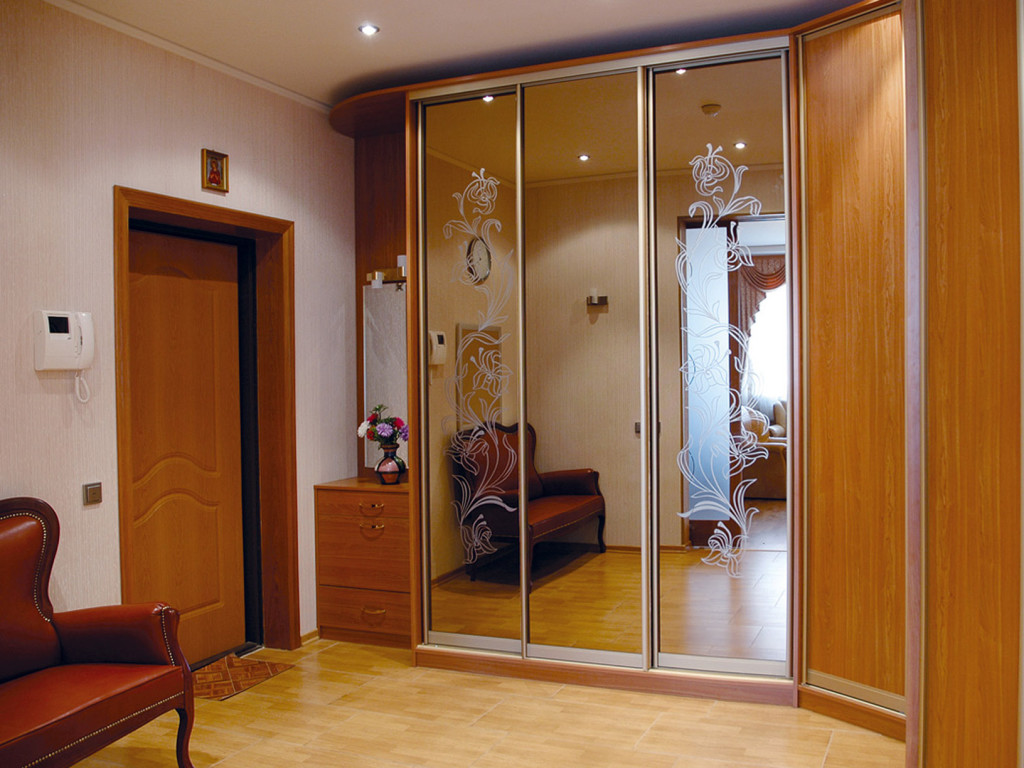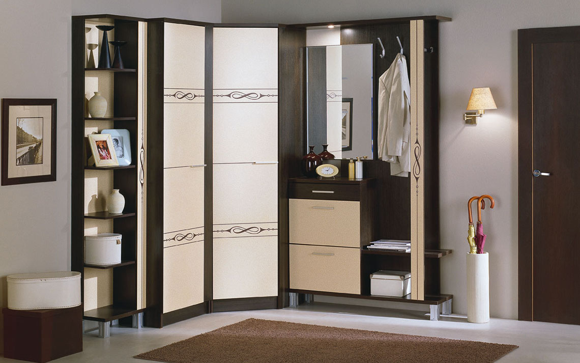 Шкафы — купе в прихожей помогут вам сэкономить пространство. В отличии от обычных «стенок», на которые неудобно вешать вещи, шкаф — купе очень приятен в использовании. Внутри можно повесить рейл для одежды, что очень удобно, приходишь домой, открываешь шкаф и вешаешь туда вещи, они там не пылятся, а висят в закрытом пространстве. Внизу шкафа можно сделать полочки для обуви, чтобы вся обувь не лежала под ногами в прихожей. А на верхние полочки можно положить коробки с обувью, которую будете носить в следующем сезоне. Обычно на таких шкафах в прихожей ставят зеркало, которое, во-первых, расширит пространство, а во-вторых, вы просто будете видеть себя перед выходом на улицу.