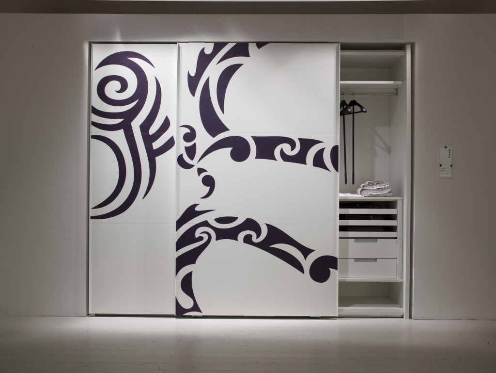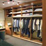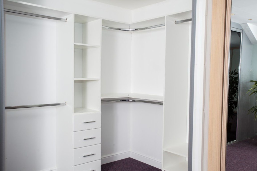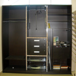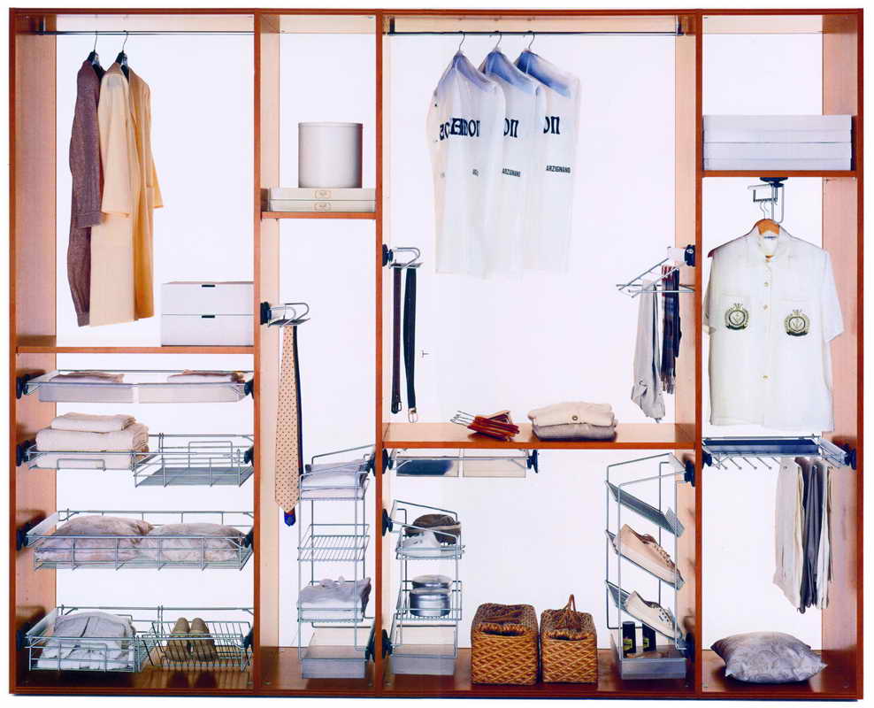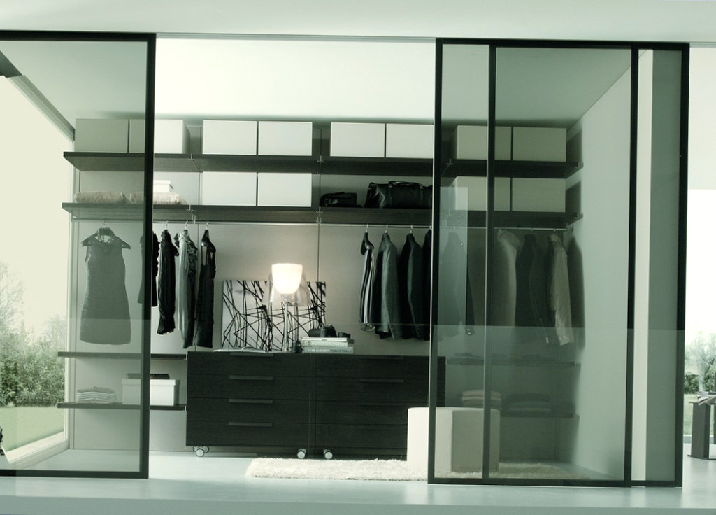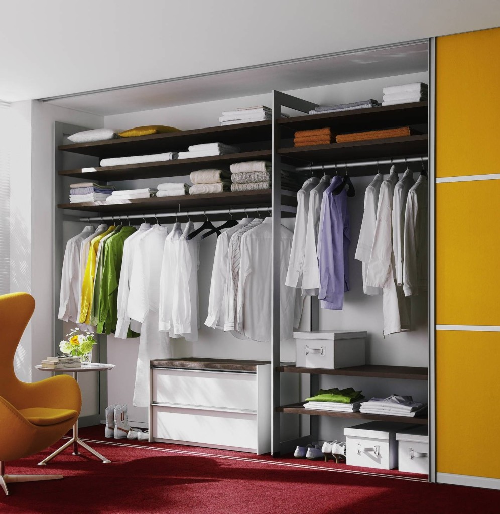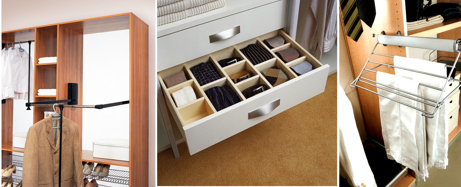 Прекрасный вариант современной мебели — это торцевые штанги, благодаря которым одежду можно повесить передом, а не боком. Именно такой способ и обеспечивает значительную экономию пространства.