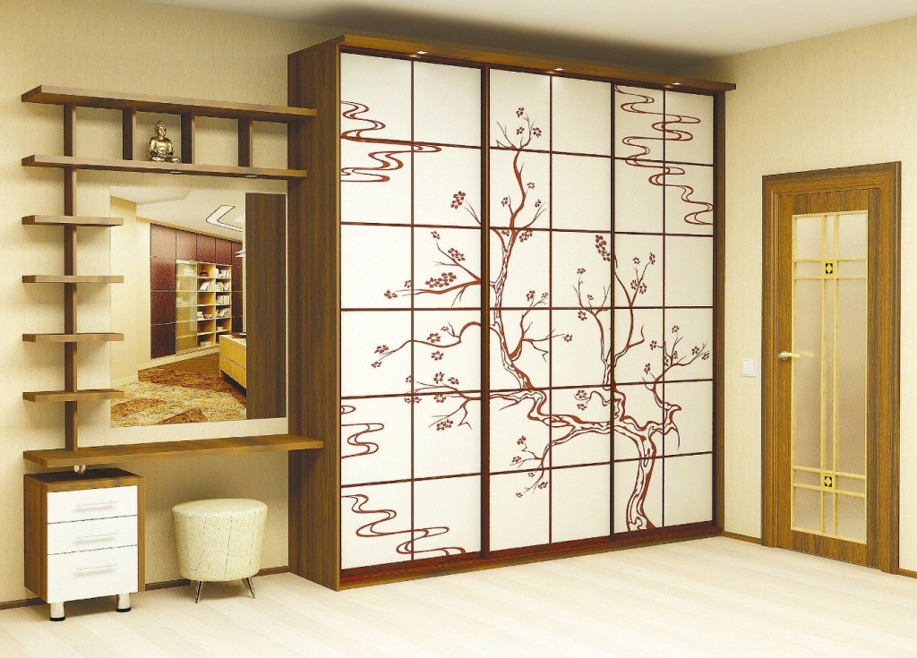 Оригинально и практично будет оформление шкафа купе зеркалом, которое аккуратно вмонтируют в одну или несколько дверей. Ведь при помощи его Вы всегда сможете осмотреться в полный рост, прежде, чем выйти за порог дома. Такой элемент не только красивый, но и очень полезный! Самые разнообразные фото шкафов купе всегда можно просмотреть в специальных каталогах!