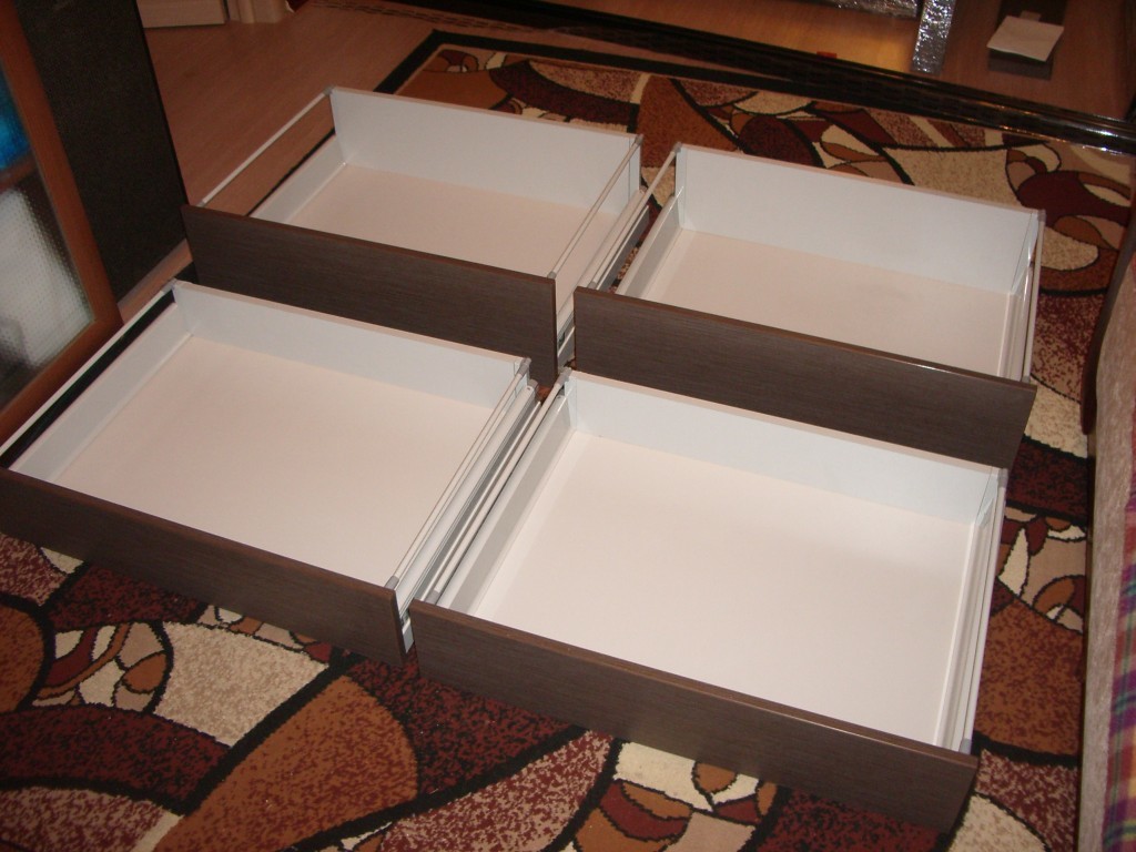 - Очень удобно, когда есть выдвижные ящики для хранения различных вещей. Самый лучший вариант, если они сделаны направляющими шариковыми.