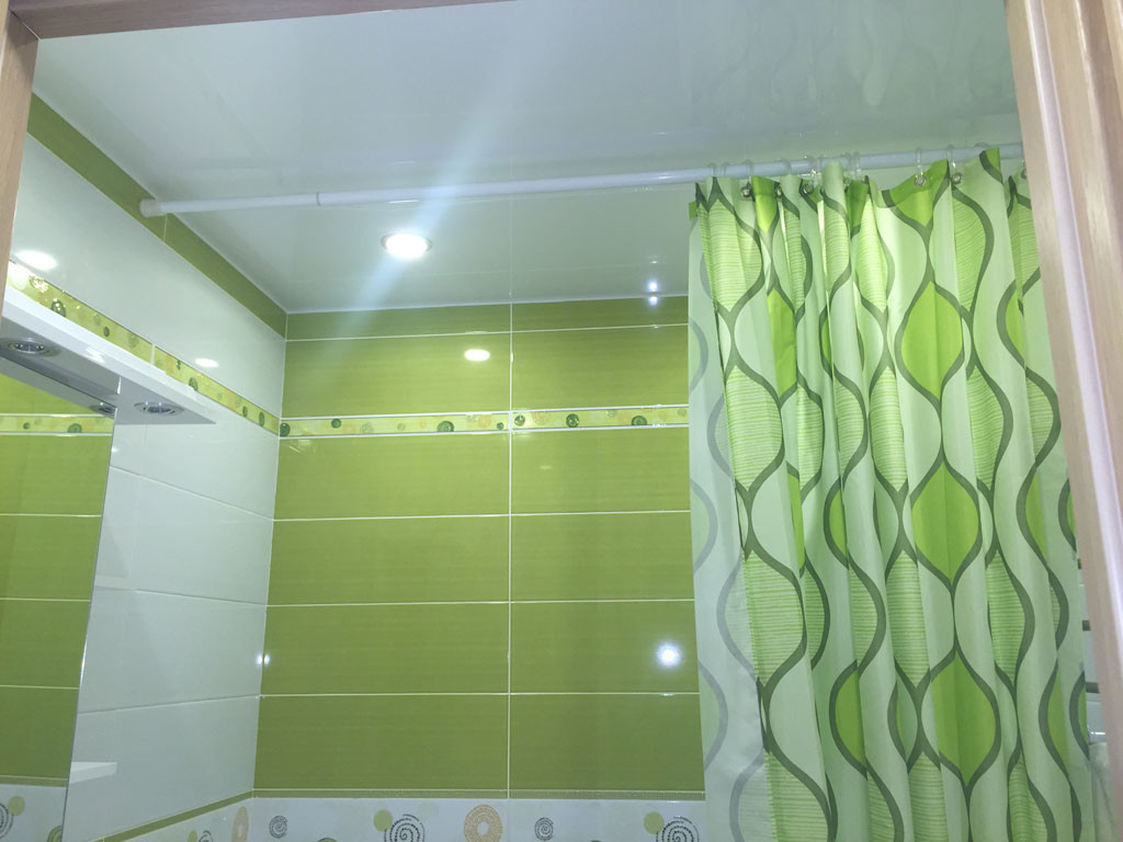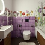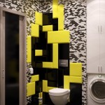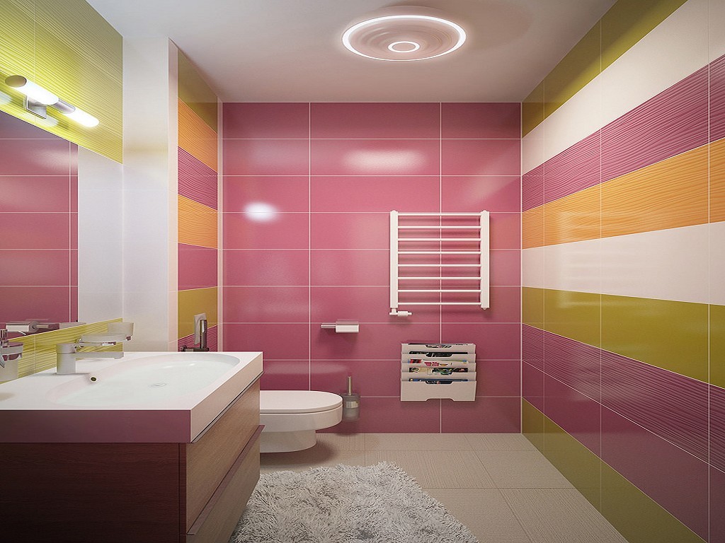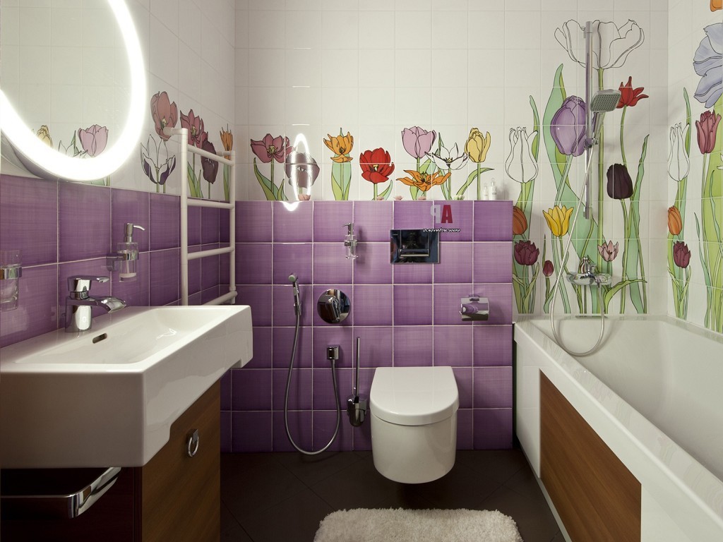 Если же потолок невысокий и неплохая ширина санузла, сделайте вставки, но только вертикальные! Или же, подберите плитку контрастных оттенков или с яркими узорами.