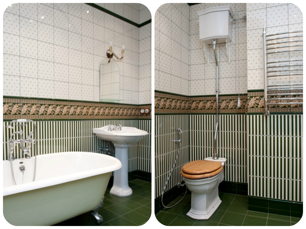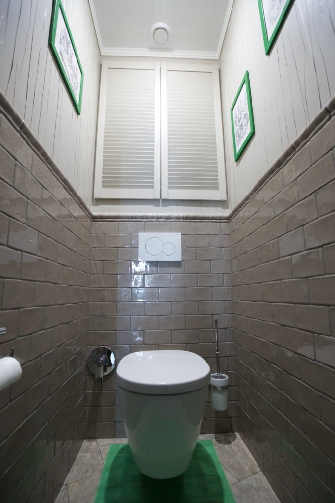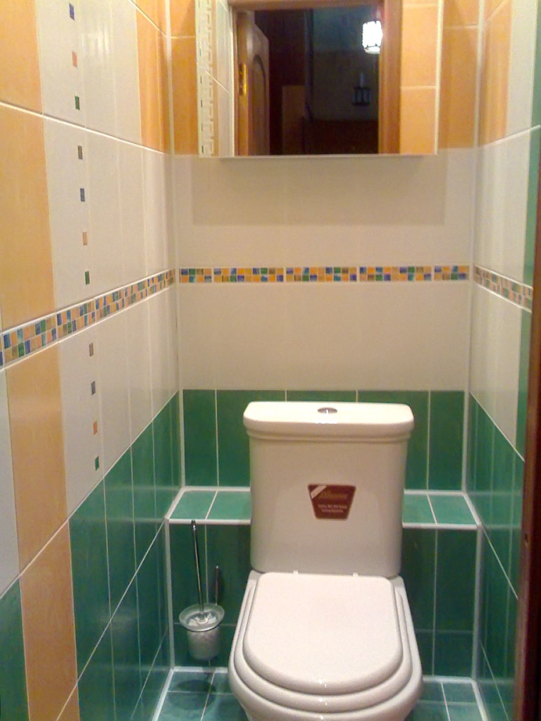 Если туалет облицован кафелем, в таком случае Вам помогут не только геометрические формы плит, но и их расположение и комбинация.