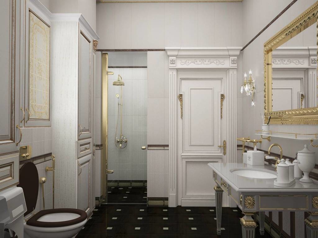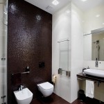 В том случае, если Вам не нравится сильно большое помещение, можете сделать темные стены – это позволит сузить пространство. Также, с этой целью можно обустроить помещение тумбочками или шкафами, которые будут занимать все свободное место санузла.