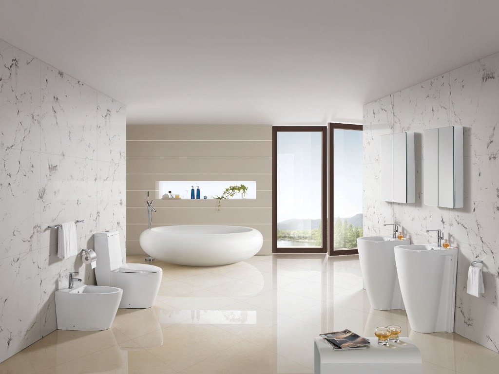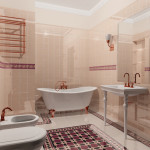 Что касается сантехники, то ее нужно выбирать такого же цвета, как и основной фон оформления стен. Иначе она будет сильно отличаться и визуально уменьшать пространство.