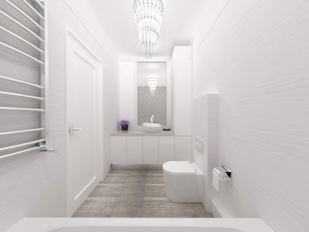 Стены здесь можно оформить плиткой или жидкими обоями. Если Вам по душе белоснежное оформление интерьера, обязательно разбавьте его яркими акцентами и дизайн туалета не будет блеклым.