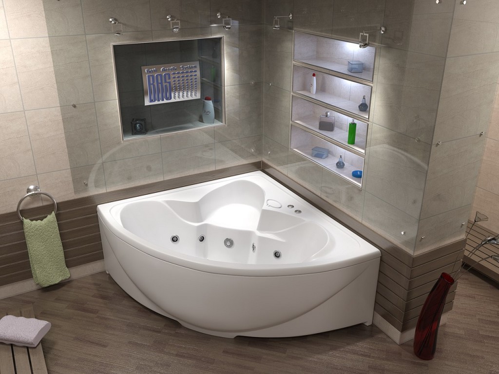 Если Вы смотрели фото дизайна ванной комнаты, то обращали внимание на угловые ванны, которые очень оригинально смотрятся при корректном оформлении интерьера. Такие ванны являются компромиссным решением, когда и вовсе от ванны не хочется отказываться, и стандартная форма уже надоела. Между прочим, вариант угловой ванны – достаточно экономен в плане пространства. Именно поэтому для небольших помещений – это отличный вариант!