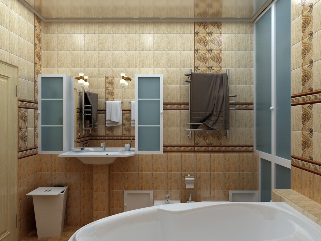 Поскольку глянец визуально выполняет ту же роль, что и зеркало, плитку лучше выбирать именно глянцевую для оформления гигиенической комнаты.