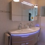 Что касается зеркала в ванной комнате, его можно оформить с подсветкой, особенно верхней. Уж что-то, а за эту установку Вы точно не пожалеете в будущем!