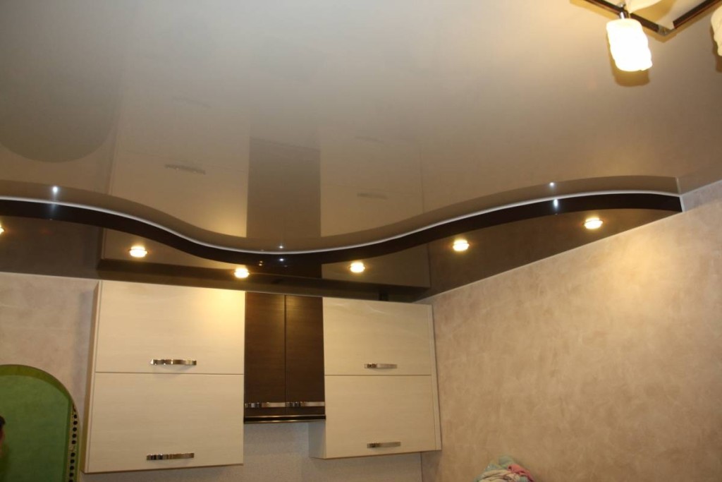 - Натяжные потолки – очень легко и быстро устанавливаются. Его можно сочетать с гипсокартоном, чтобы создать неповторимый дизайн интерьера. Единственным недостатком такого варианта потолка может стать его цена.