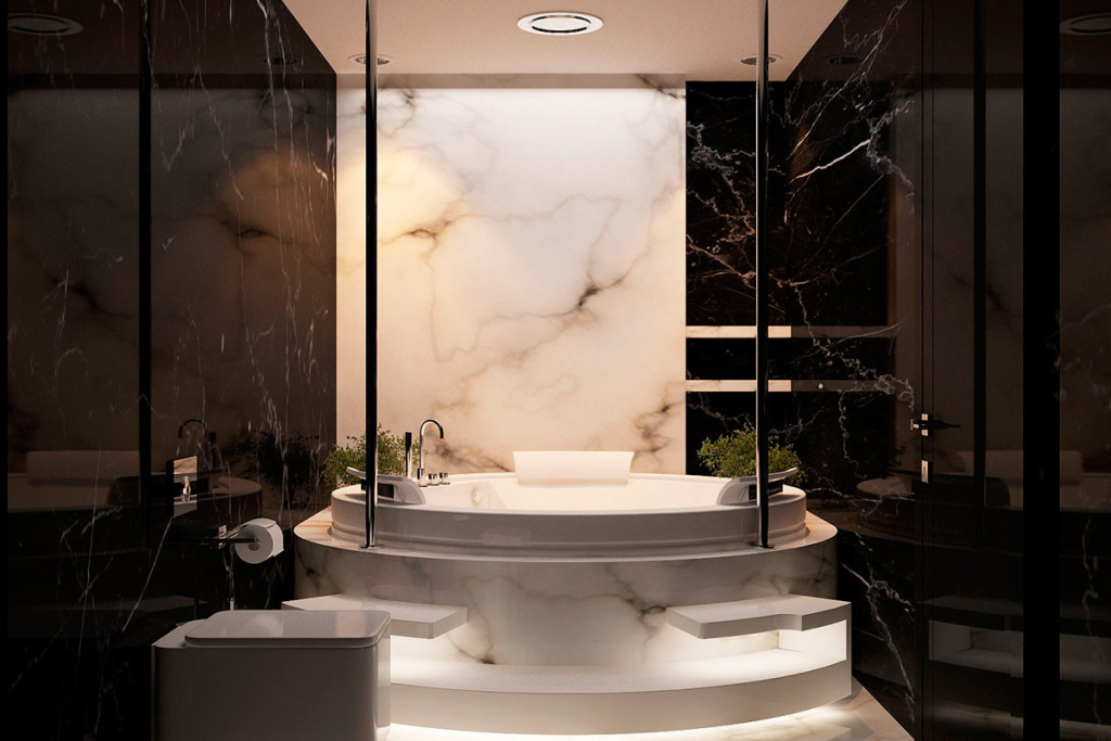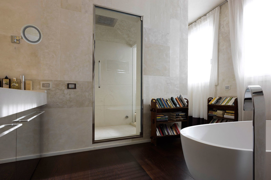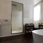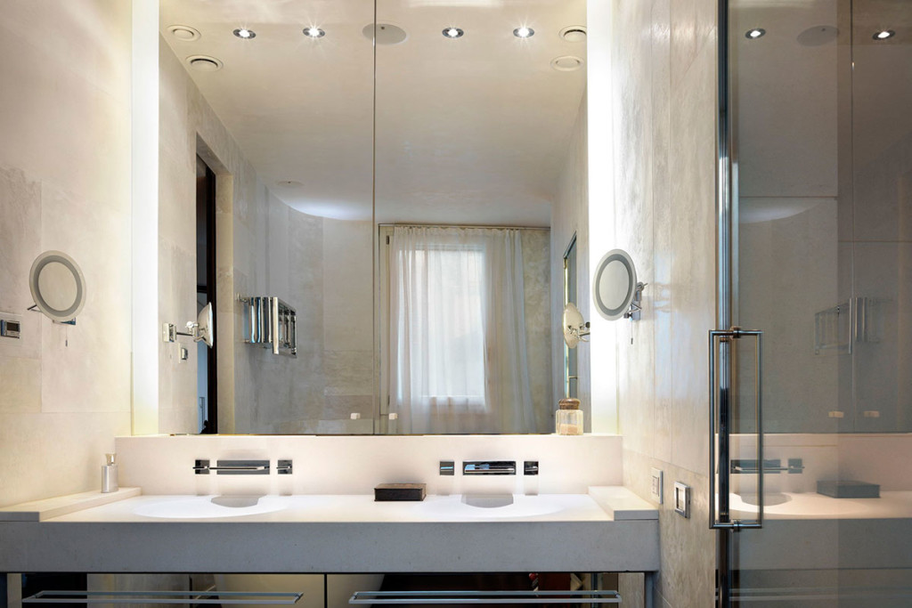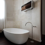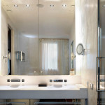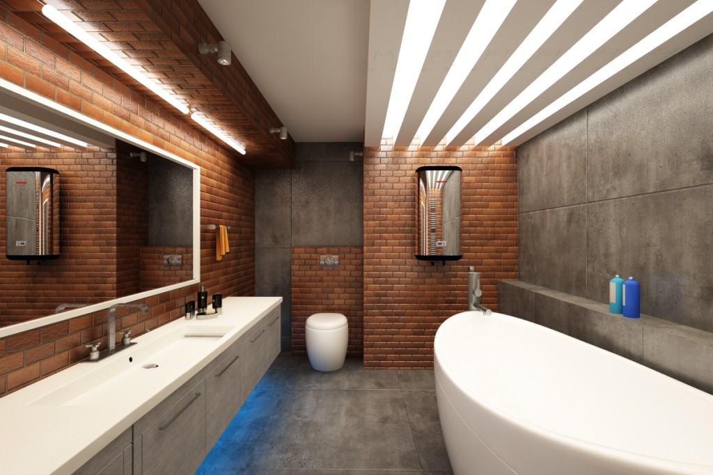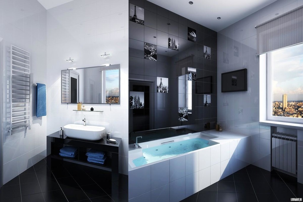 Здесь учитывается размер, от которого очень много зависит. Если же необходимо оформить дизайн маленькой комнаты для гигиенических процедур, с этим вопросом справиться можно. Но главное, что здесь нужно сделать правильно – это грамотно распределить, расположить и расставить все элементы. Максимально нужно использовать буквально каждый миллиметр пространства. Может быть, придется и не ставить стиральную машину в ванной, а разместить ее в кухне, а также приобрести узкий и достаточно высокий шкаф, который позволит не загромоздить пространство (квадратные метры на полу) и, в тоже время Вы сможете вместить в него все необходимое.