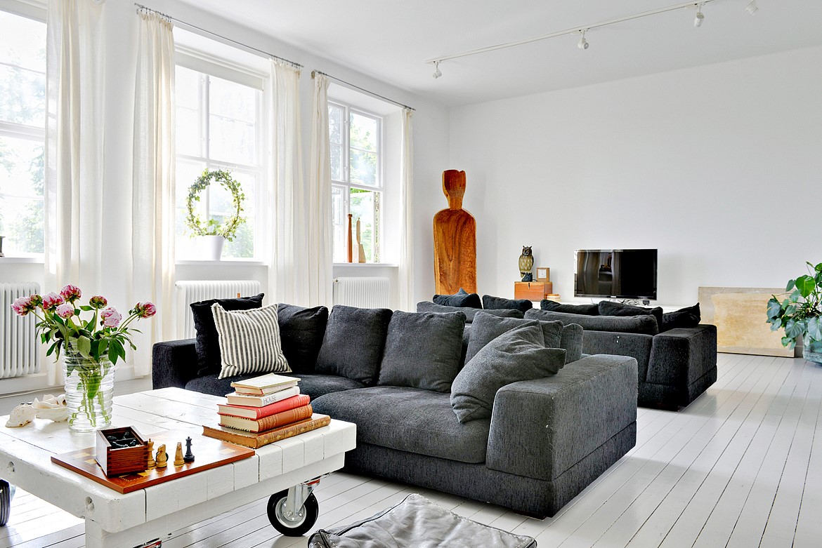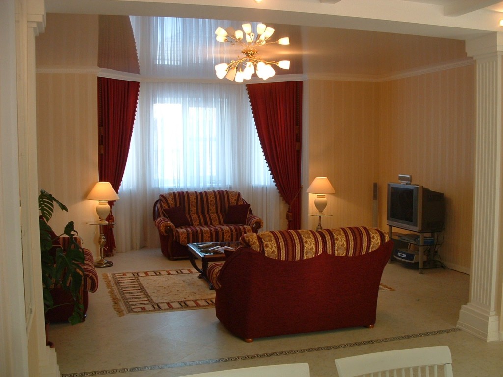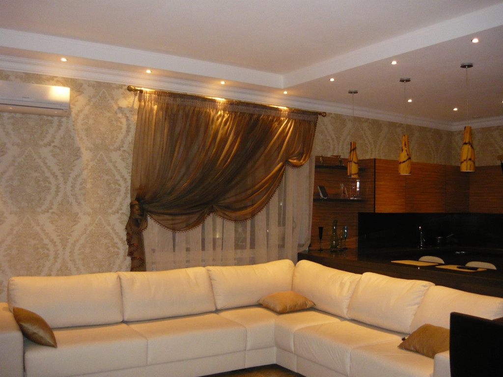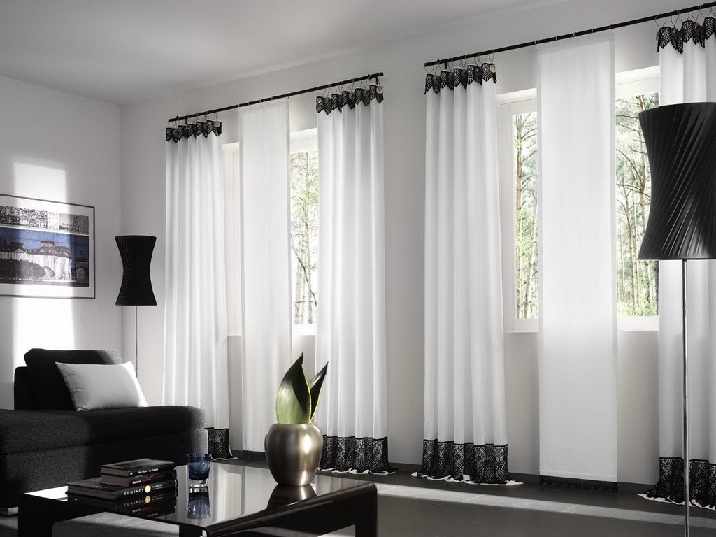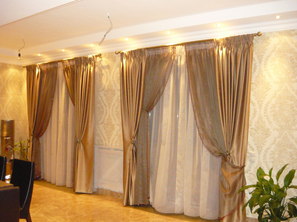 Для оформления интерьера гостиных, как правило, применяют длинные шторы.