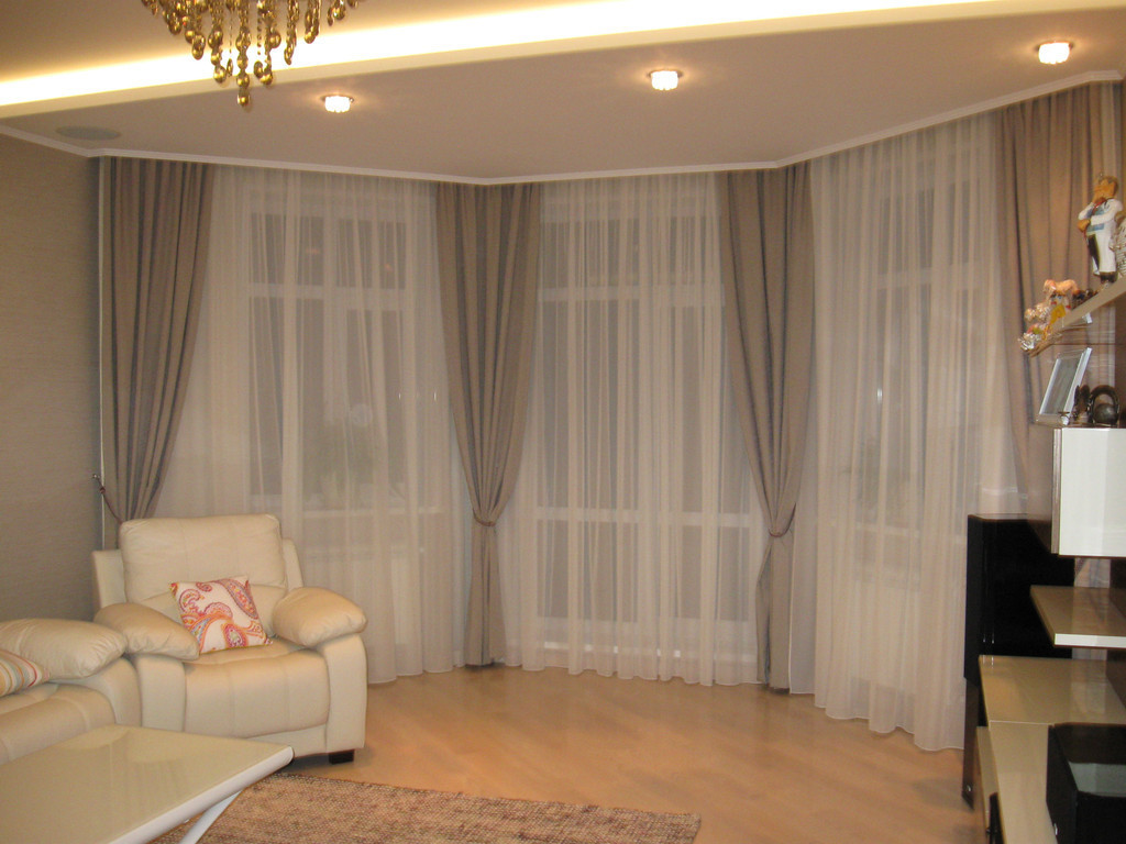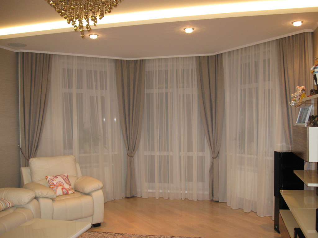 Так называют некий выступ, имеющийся в стене квартиры. Это считается очень практично и модно. Визуально эркер способен расширить помещение квартиры. Шторами такое помещение можете декорировать опираясь на собственные вкусы и нравы, но обязательно учитывая стиль оформления интерьера Вашей гостиной комнаты.
