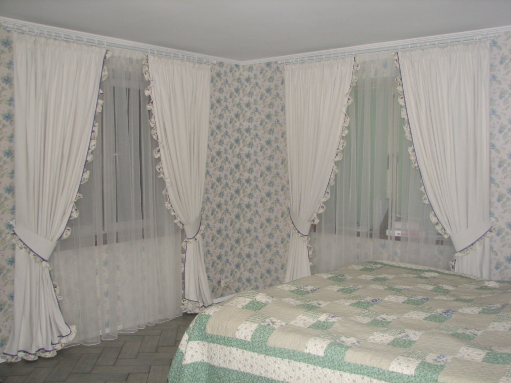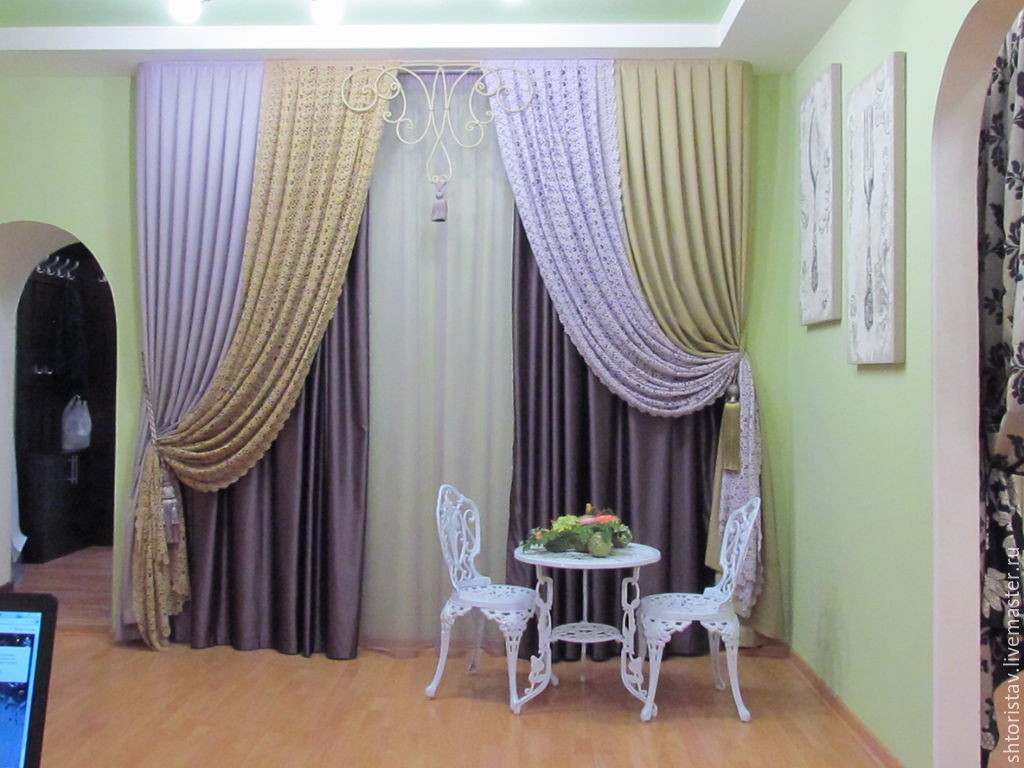 - При расположении шторы от одной стены до другой, они визуально расширяют пространство, а также создают дополнительный «свет» и уют.