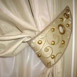 - Актуальны шторы, оформленные ниспадающими бусами, нитями, камнями или стеклярусами;