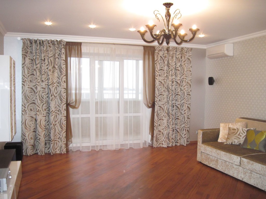 На самом деле существует очень большой выбор штор для залов с балконами. Самое главное, учитывать каким будет основной стиль. Однозначно не стоит в хай тек вешать классические шторы, даже если они будут казаться самым удобным, среди всех возможных вариантов!