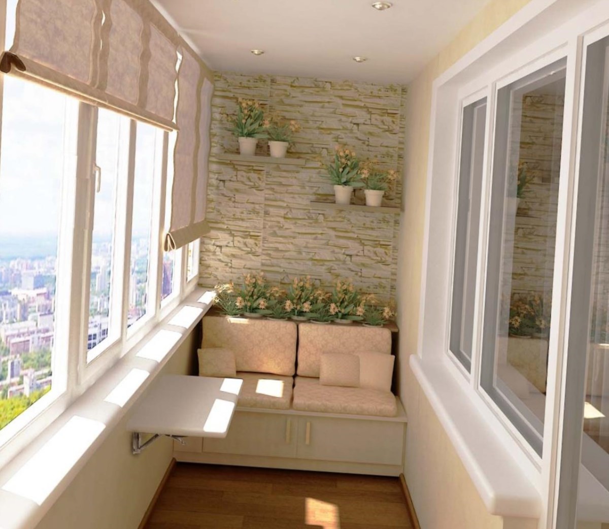 А ведь если лоджия или балкон застеклены, их можно использовать в качестве продолжения кухни, гостиной комнаты, а может, обустроить там мини-кабинет, бар или просто комфортную зону для отдыха!